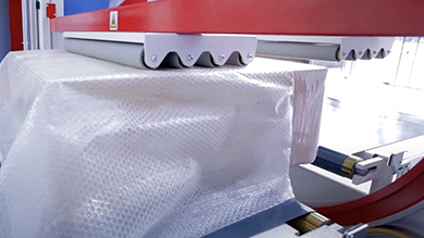 La embaladora automática que combina film de burbuja con film estirable es una solución integral para el embalaje de productos