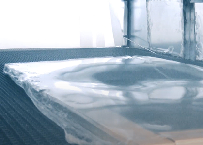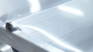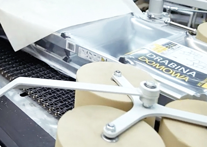 El paquete retractilado se desplaza por un transportador de banda modular que conservan el calor sin pérdidas energéticas. Unos rodillos prensores apretan el plástico sobrante lateral. El resultado es un embalaje resistente, uniforme y visualmente atractivo.