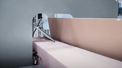 A la vez que el cartón avanza longitudinalmente, las cuchillas de hendido y de corte longitudinal, en combinación la transversal, se activan según los parámetros de caja seleccionados, para crear el troquel requerido.