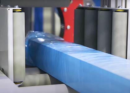 Su corona giratoria aplica el film estirable de manera horizontal alrededor de los productos, asegurando una cobertura uniforme y una protección eficaz durante el proceso de embalaje. Esta solución automatizada agiliza la envoltura de perfiles y molduras, mejorando la eficiencia del embalaje y garantizando una aplicación consistente del film estirable para una protección segura y un manejo eficiente en la cadena de suministro.